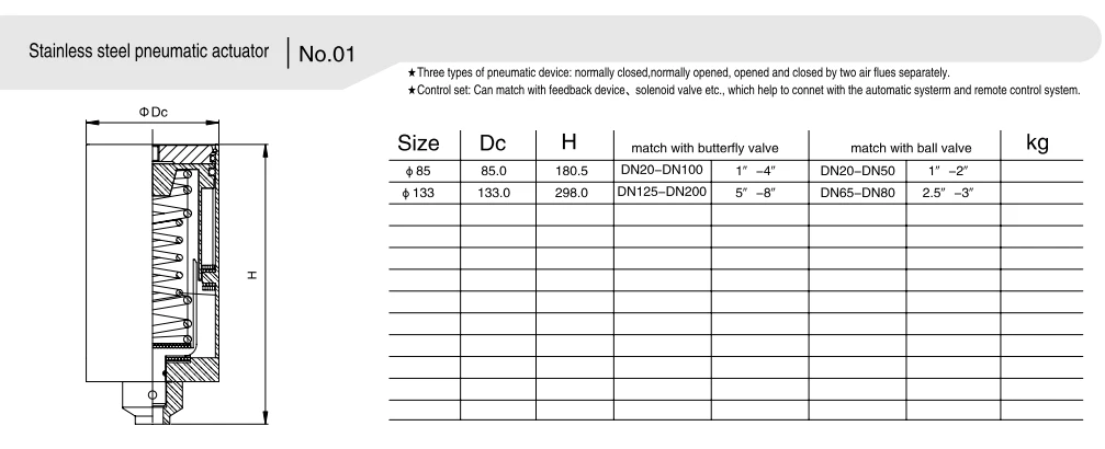 - Actus singularis agens: attractio aeris ab una parte agitatus, altera parte vi vernis nititur pro automatic reset super aerem copia defectio. Haec operatio pipelinea tutum praestat et potentiale discrimina vitat in casu aeris supplementi systematis defectus.